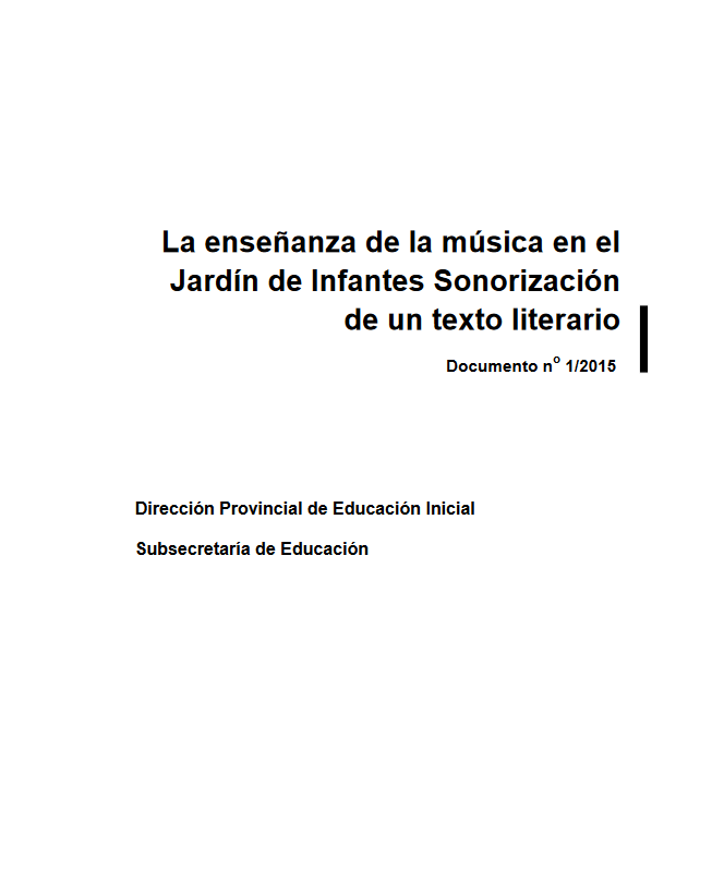 Documento elaborado que tiene como destinatarios a inspectores, equipos directivos y docentes de Nivel Inicial, herramientas que estimulen la reflexión y enriquecimiento de las propuestas de enseñanza de música.