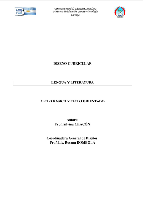 Diseño Curricular de Lengua y Literatura, perteneciente al Ciclo Básico y Orientado de la Educación Secundaria para las áreas Curriculares del Campo de la Formación General.