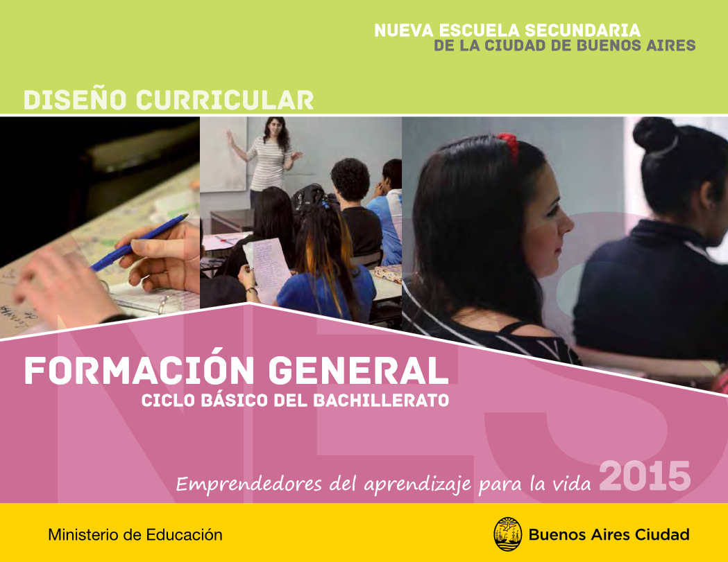 Diseño curricular para la Educación Secundaria para el Ciclo básico de la Ciudad Autónoma de Buenos Aires. Se presenta el índice general de las áreas curriculares y el desarrollo de las mismas para el 1°, 2° y 3° año.