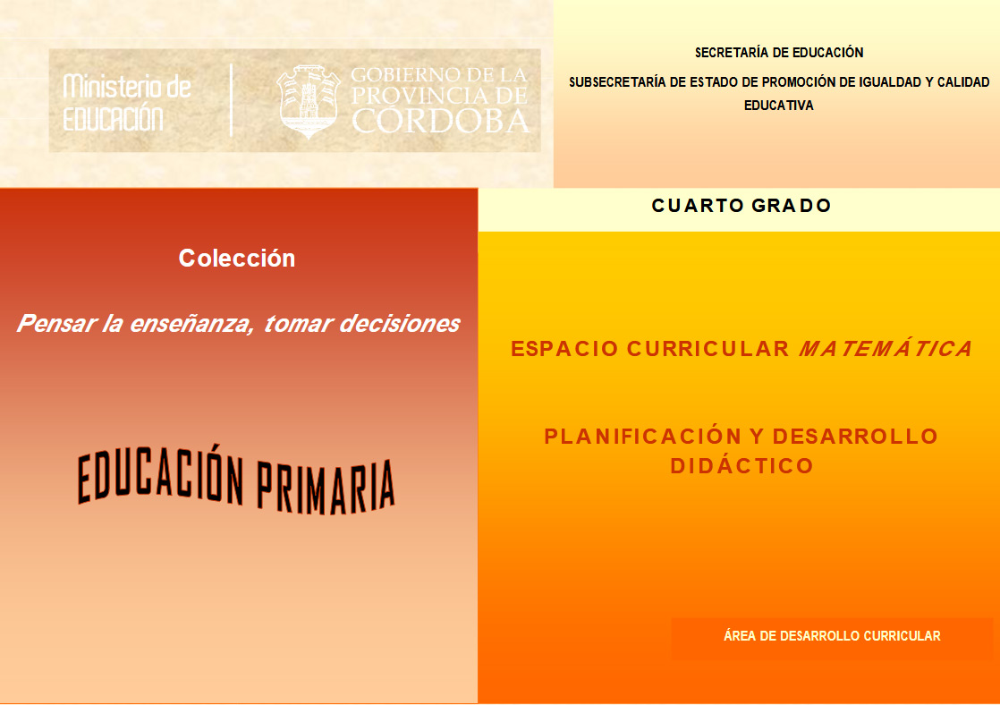 Documento de la Colección PENSAR LA ENSEÑANZA, TOMAR DECISIONES, destinada a compartir algunas propuestas posibles de planificación de la enseñanza para distintos grados y espacios curriculares de la Educación Primaria. Se han incluido, además, algunos desarrollos didácticos con el propósito de mostrar algunas alternativas de implementación en cuanto a actividades de aprendizaje, intervenciones docentes, modalidades de organización y gestión de la clase, recursos.