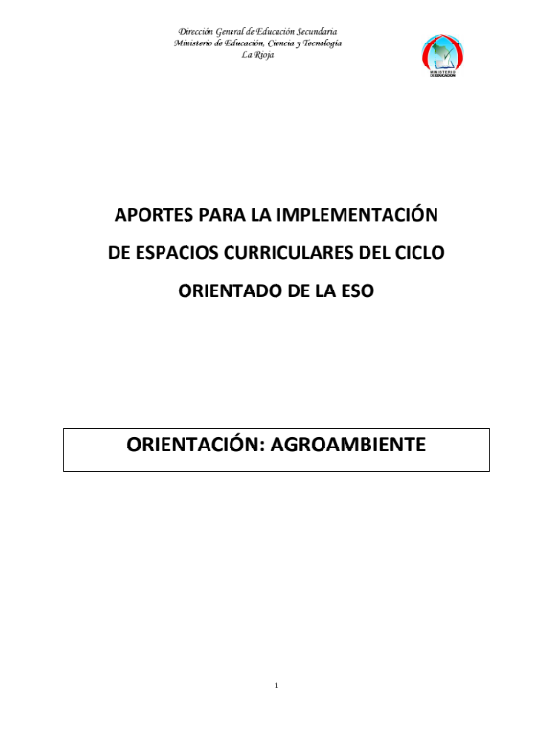 Aportes para la implementación de espacios curriculares del Ciclo Orientado, caracterizaciones de los espacios específicos para la Orientación Agroambiente.