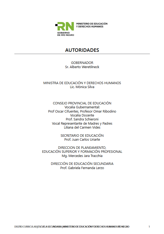 El Diseño Curricular para el Nivel Secundario de la provincia de Río Negro aborda, el Ciclo Básico y las áreas de conocimiento para la formación general y formación específica del Ciclo Orientado.