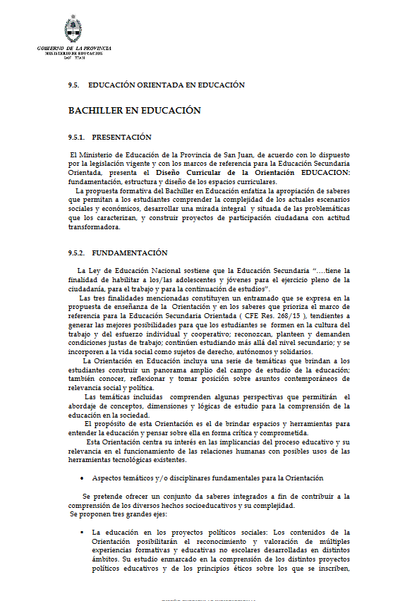 Materias específicas correspondientes al Diseño curricular del Ciclo orientado para Educación Secundaria. Título: Bachiller en Educación.