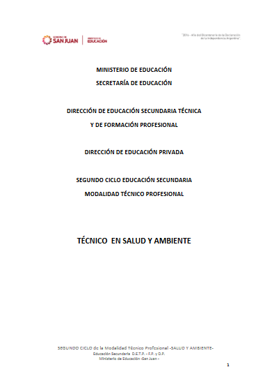 Diseño curricular del ciclo orientado para Educación Secundaria de modalidad Técnico Profesional | Técnico en Salud y Ambiente