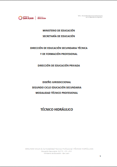 Diseño curricular del ciclo orientado para Educación Secundaria de modalidad Técnico Profesional | Técnico Hidráulico